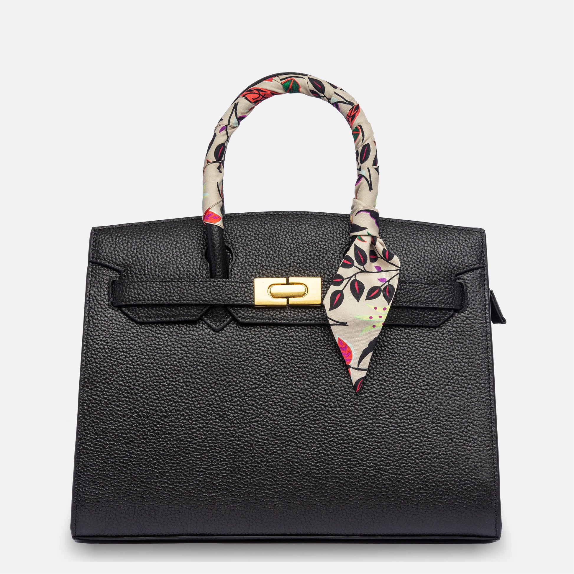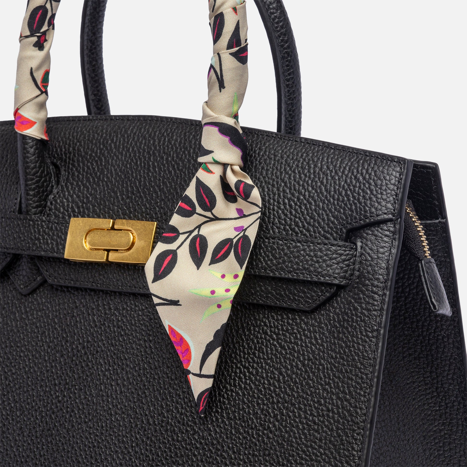 Borsa artigianale in vera pelle, impreziosita da un bandeau in pura seta cucito a mano e caratterizzato da una raffinata stampa a fiori, proposta in tiratura limitata. Il contrasto sensoriale tra la morbidezza del tessuto e la texture grintosa della pelle nera conferisce a Hedonè un’allure sofisticata e distintiva. La linea strutturata si abbina a un interno capiente, perfetto per contenere l’essenziale, oltre a: un libro, un nécessaire, la custodia degli occhiali e dispositivi dalle dimensioni simili a un iPad Air. A completare il design, una placchetta dorata frontale ispirata ai modelli iconici, un dettaglio luminoso che dona fascino e personalità. Dal lavoro al tempo libero, Hedonè si adatta perfettamente a ogni contesto, rivelandosi la compagna ideale per chi desidera stile e praticità in un unico modello.
